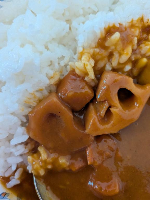 お昼はカレー食べますレンコン入れてみました。