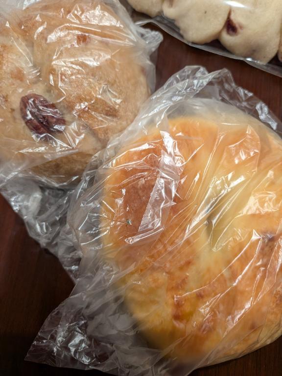 今朝はパン屋で買ってきた、ベーグル食べます