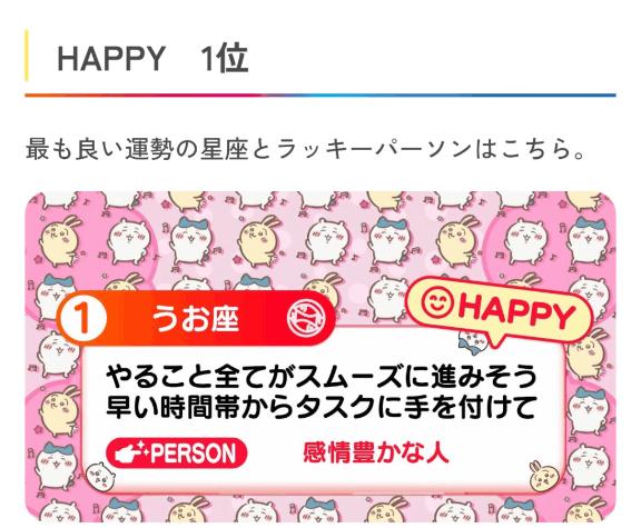 今日の、めざまし占い、うお座、1位うれしい!良いことあり…